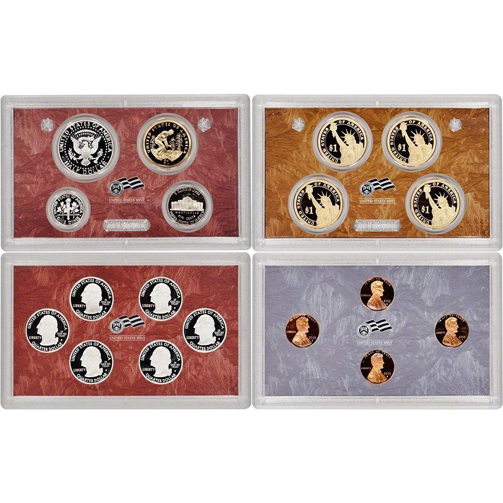 This 18-piece Proof Coin Set, minted at the San Francisco Mint, includes 4 Bicentennial Lincoln Pennies, a Nickel, a Silver Dime, 6 Washington DC and Territory Silver Quarters, a Silver Half Dollar, 4 Presidential Dollars, and 1 Native American Dollar. Proof coins, known for their mirror-like finishes and fine details, are created exclusively for collectors and not for circulation. The set comes in original government packaging and makes a great gift or addition to any coin collection. It has a customer rating of 4.3 out of 5 stars.