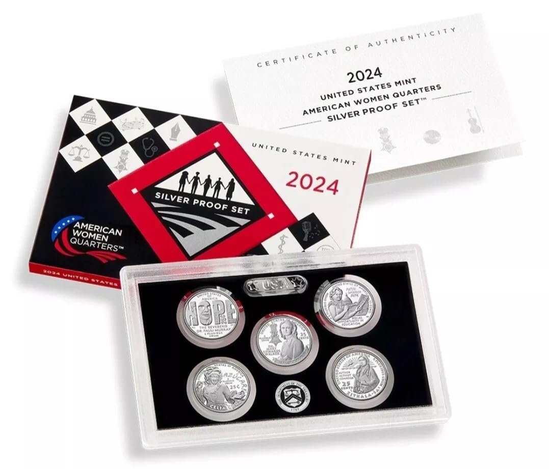 Celebrate the 20th anniversary of the American Silver Eagle coin series with the 2024 S Silver Quarters US Mint Proof Set. This limited-edition collection features five silver quarters, each marked with the ‘S’ mint mark and struck in high proof quality for a stunning deep cameo finish. Presented in an elegant box with a Certificate of Authenticity, these coins highlight US Mint artistry and are perfect for collectors. Composed of 90% silver, this set offers historical significance and impeccable craftsmanship. Secure your piece of American numismatic history starting June 27, 2024.