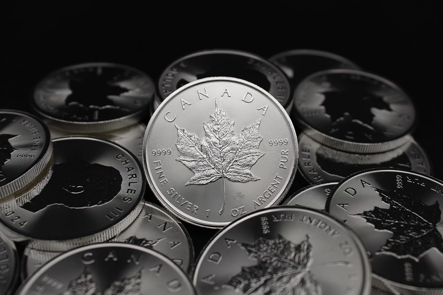 This product features 2025 Silver Maple coins, each made of 99.99% fine silver. Available in various weights (1, 5, 10, and 25 Troy ounces), prices range from $54.52 to $1,276.66. The Royal Canadian Mint mints these coins, which have dimensions of 38 mm in diameter and 3.29 mm thick. A purchase includes a total of ten 1 Troy Ounce coins. The product was first available on December 6, 2019, and weighs 1.59 ounces.