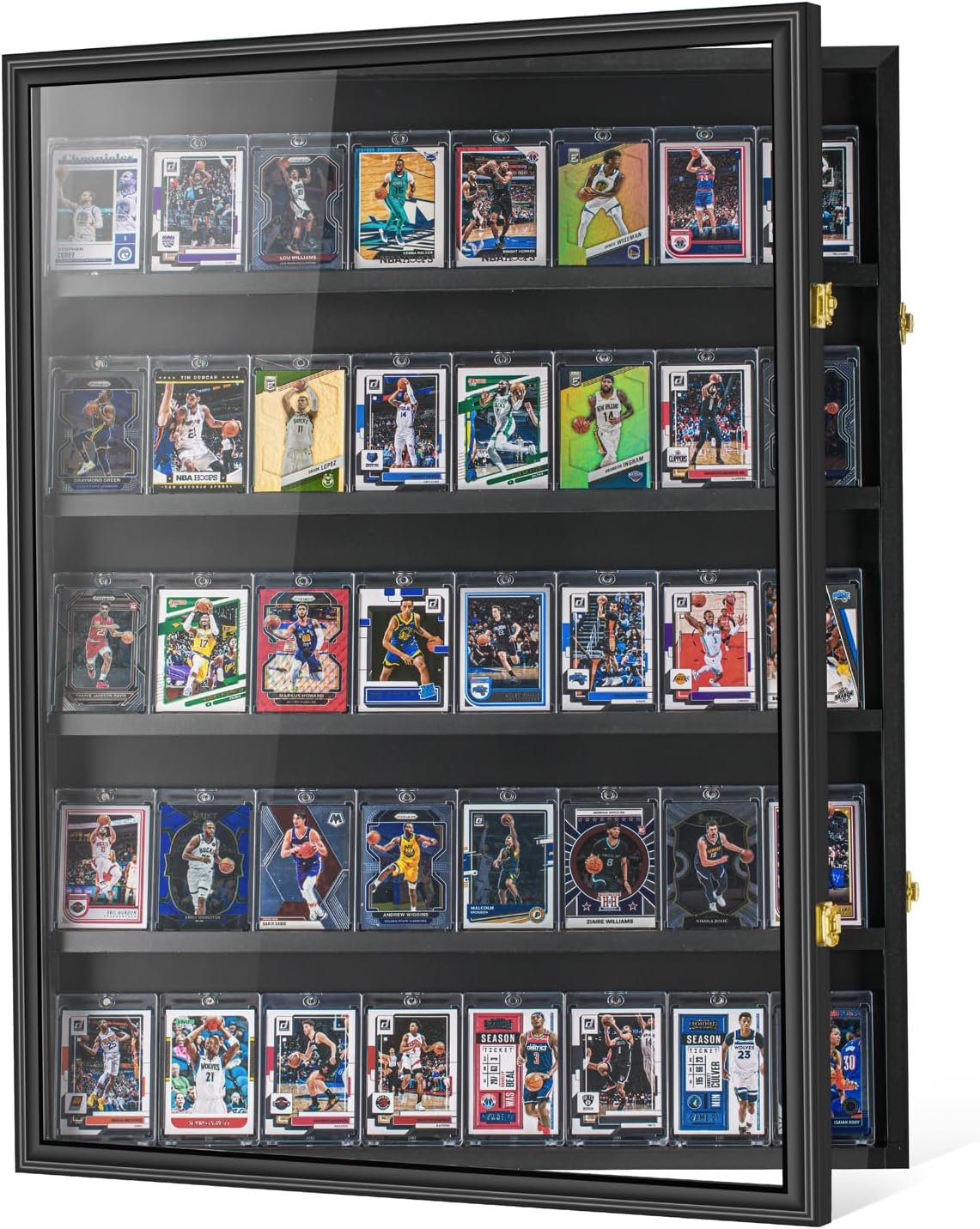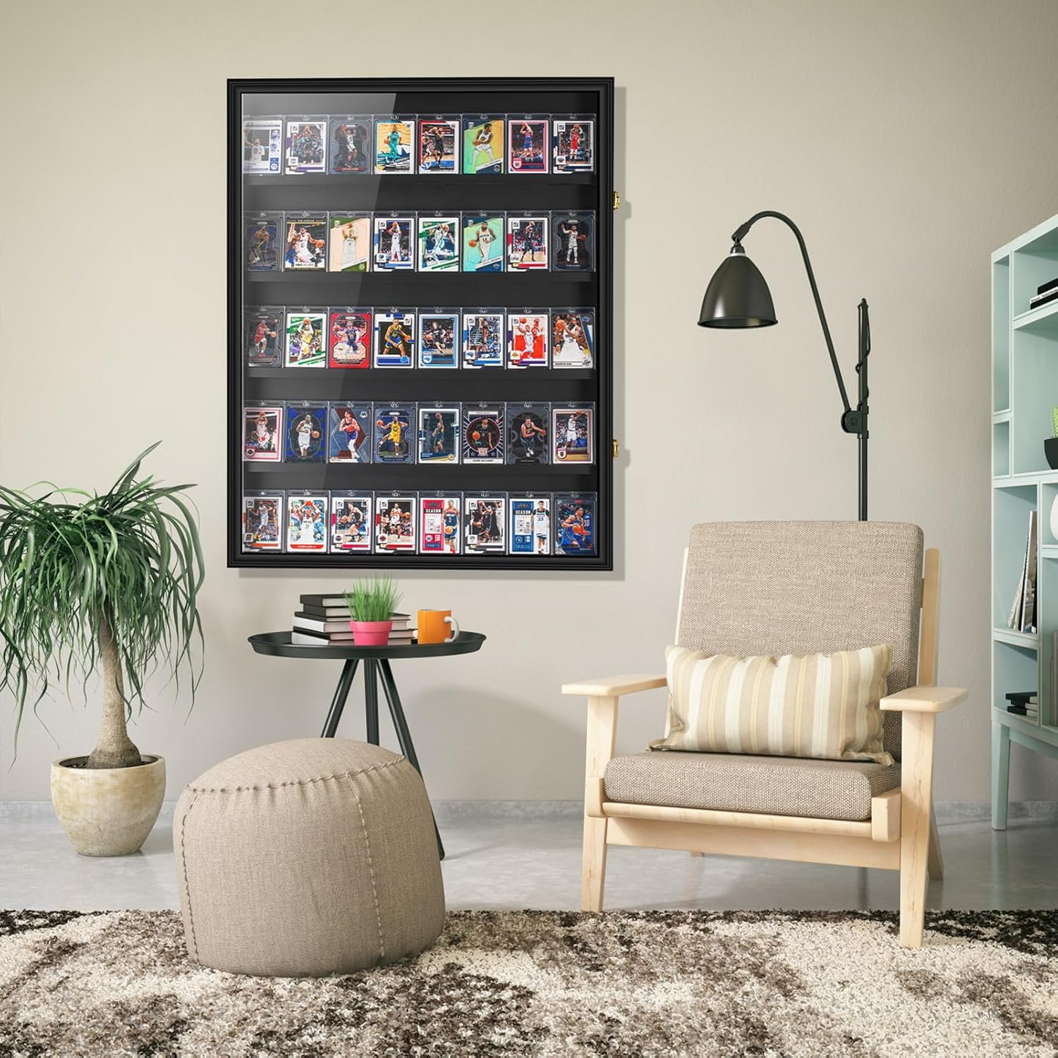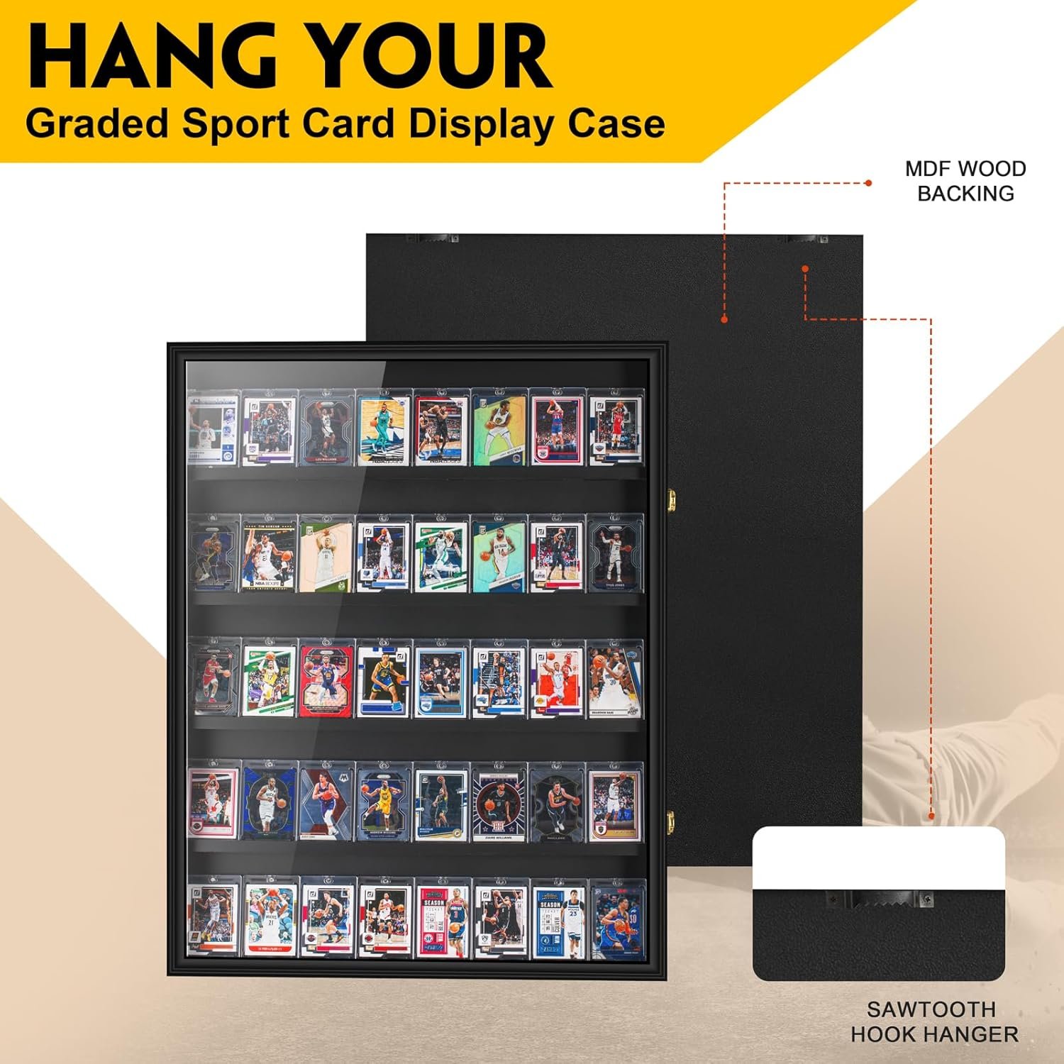 40 Graded Sport Card Display Case XL Baseball Card Display Case Wooden Wall Cabinet for Basketball Football Hockey Trading Cards Display Collectibles Souvenirs