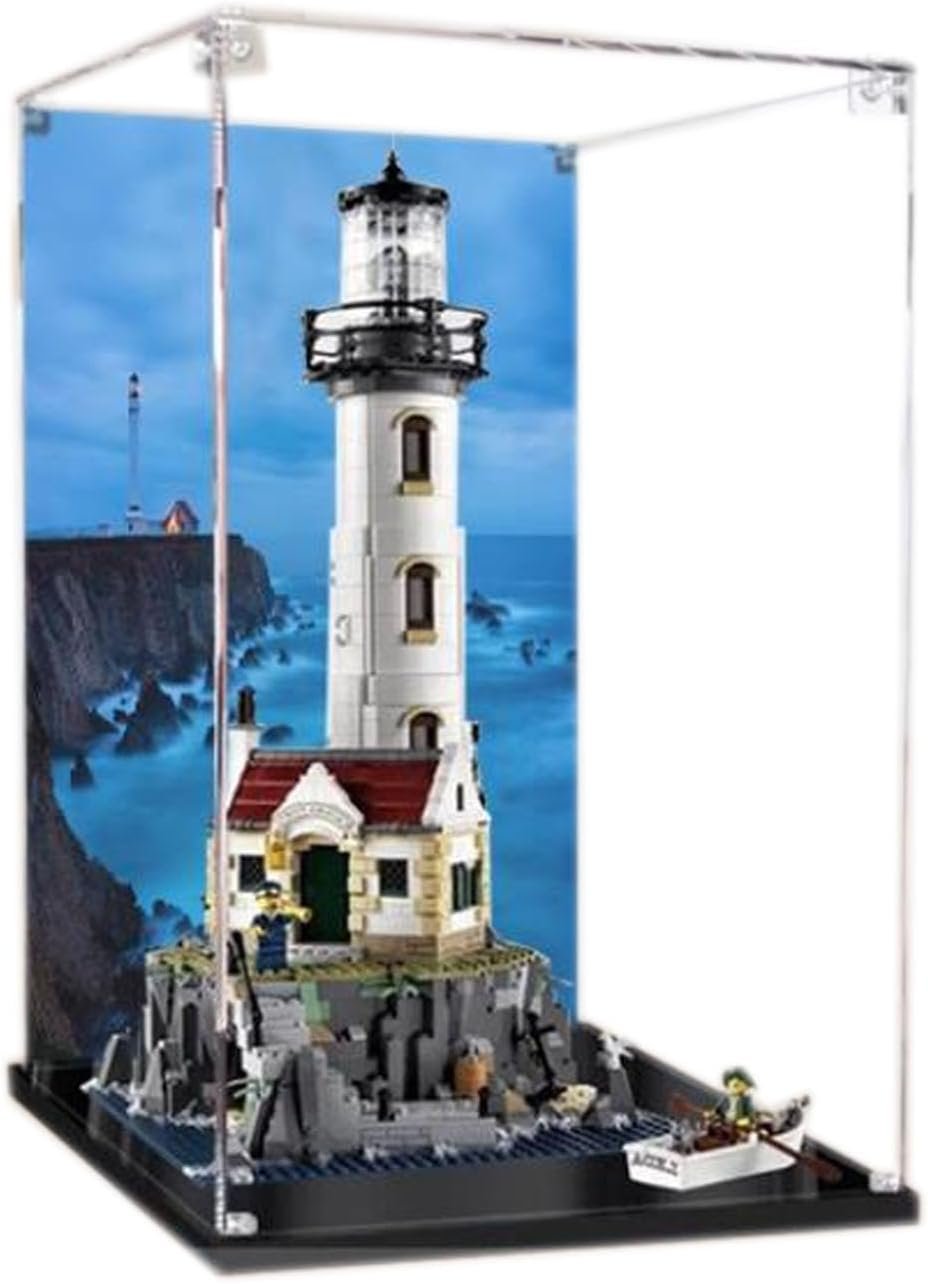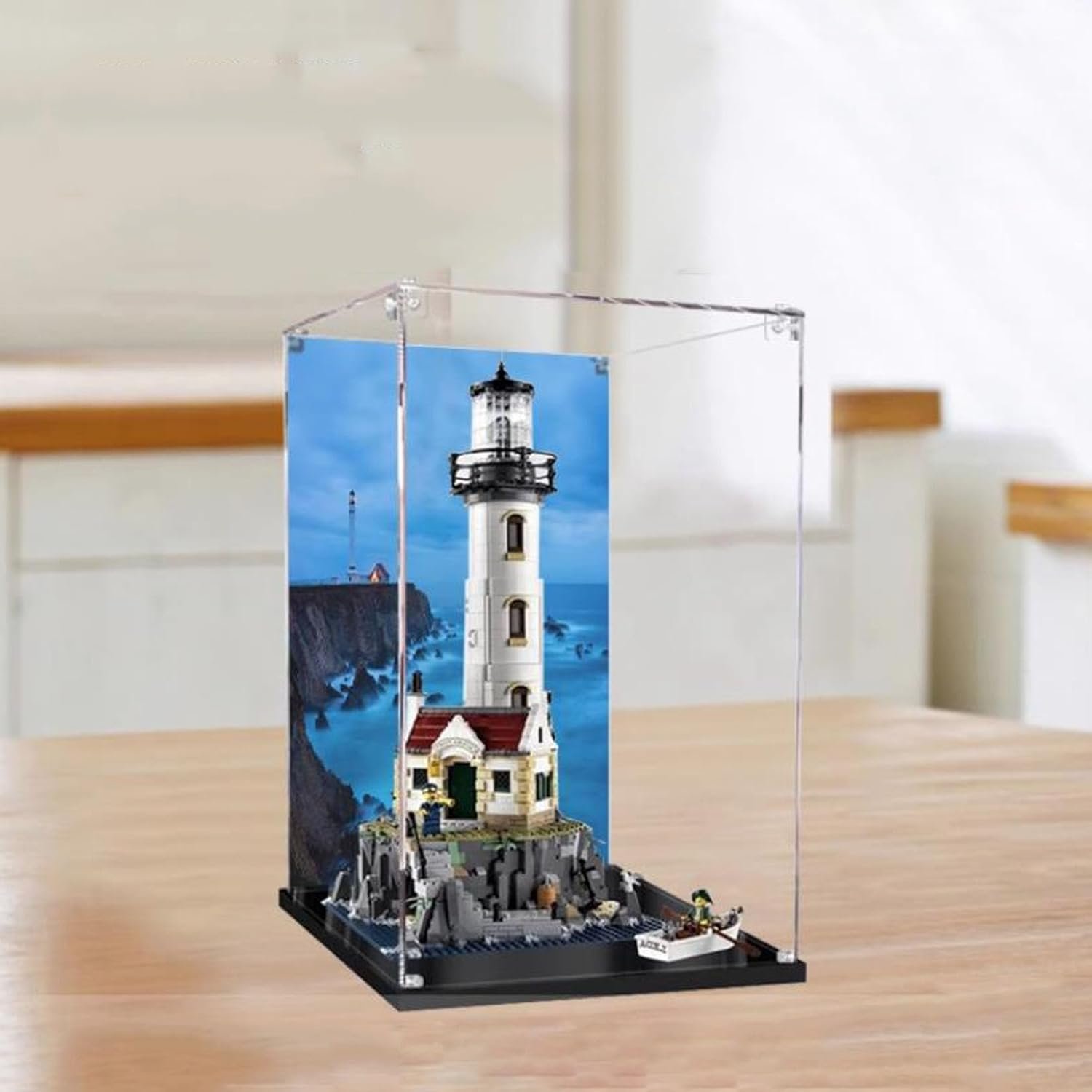 Acrylic Display Case for Lego Ideas Motorized Lighthouse 21335 – Showcase, Protect & Decorate Model with Dustproof Storage, Collectibles (Background B)