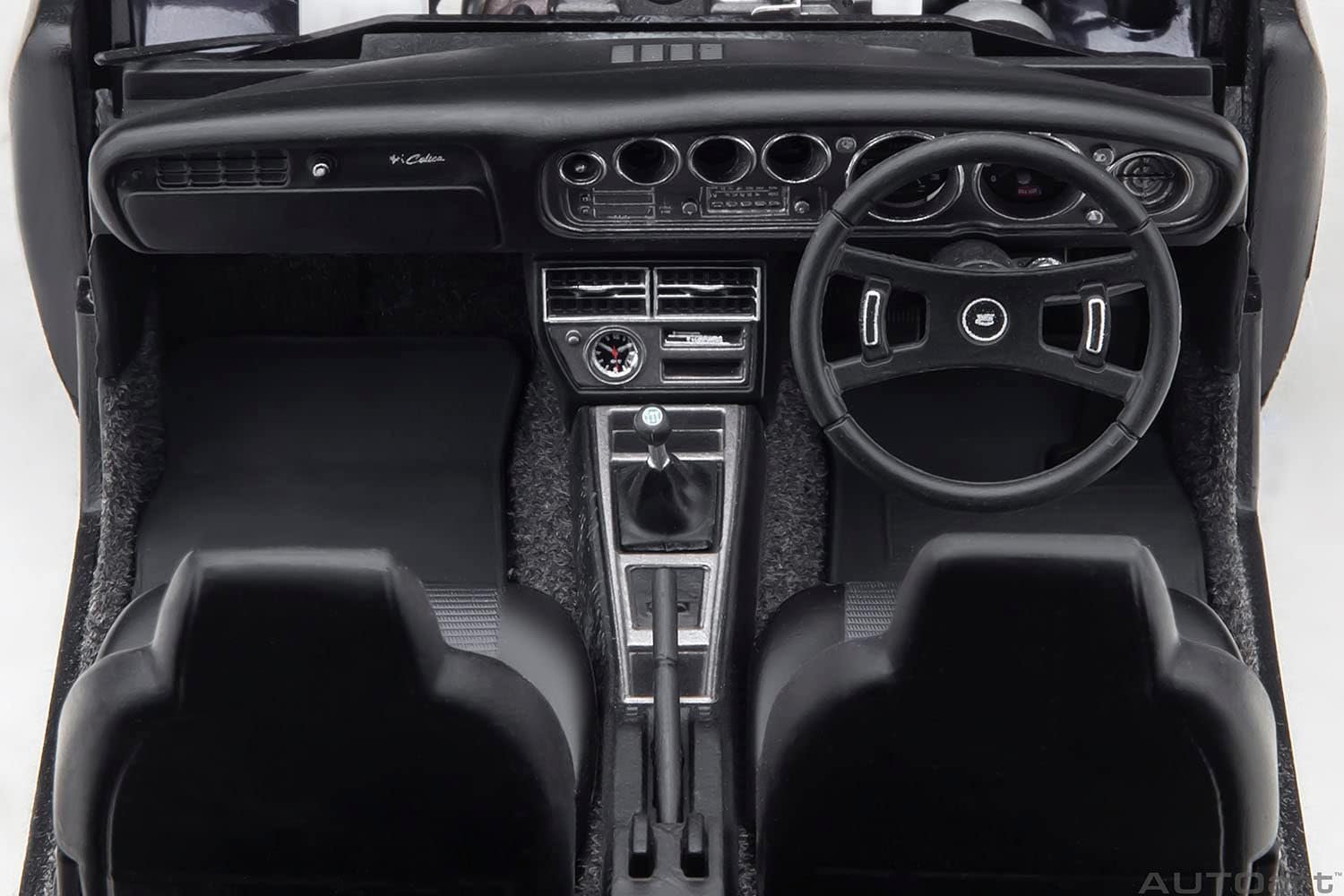 The first generation Toyota Celica, launched in 1970, marked Japan’s entry into specialty cars. The Celica Liftback, added in 1973, became the first GT car with rear seats that fold down. Auto-Art’s 1:18 model replicates the high-performance Liftback 2000GT’s sporty design.