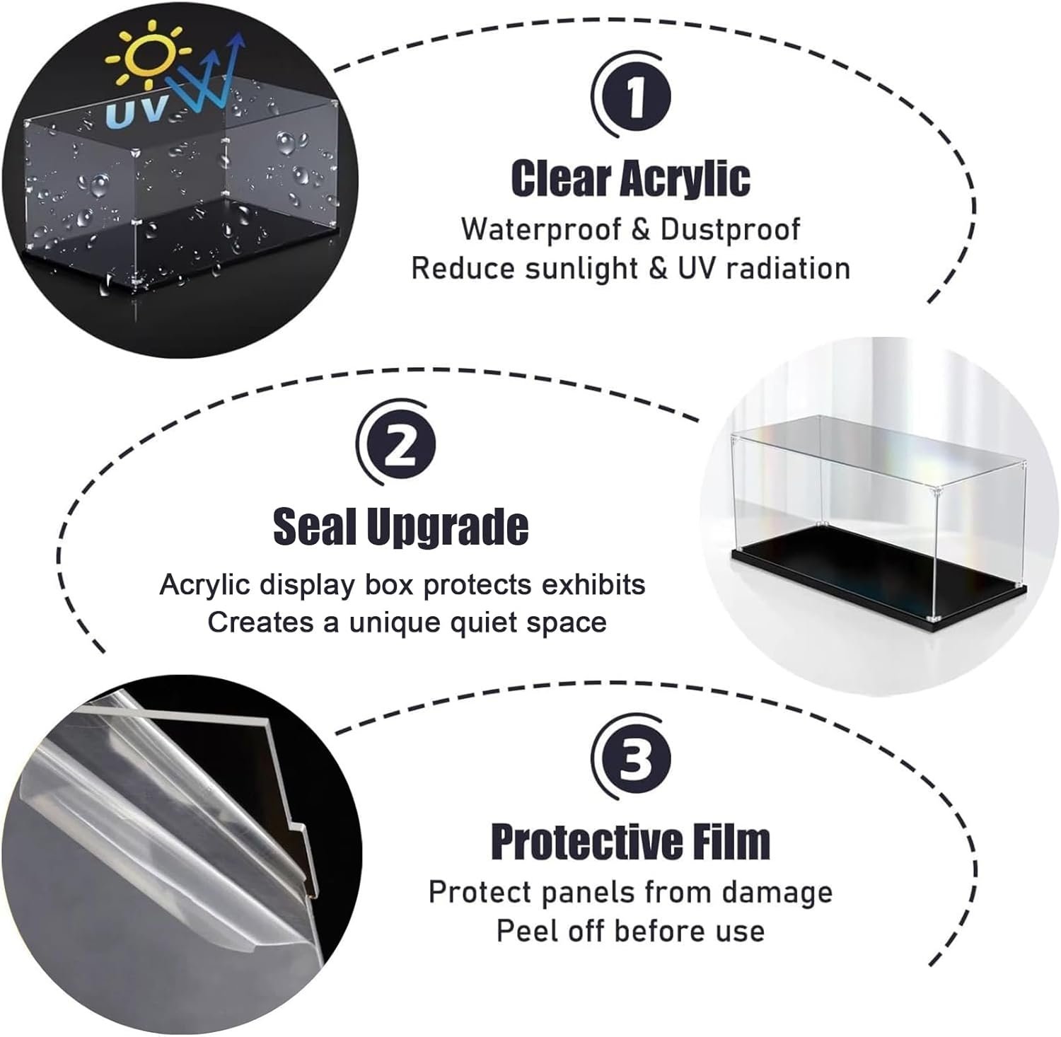 The acrylic display case features a high-transparency design with a black base, perfect for showcasing your collections. With easy assembly and protective films to prevent scratches, it’s ideal for art materials, action figures, and more. Available in various sizes.