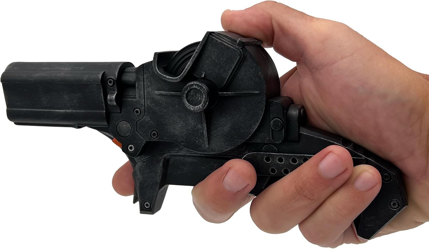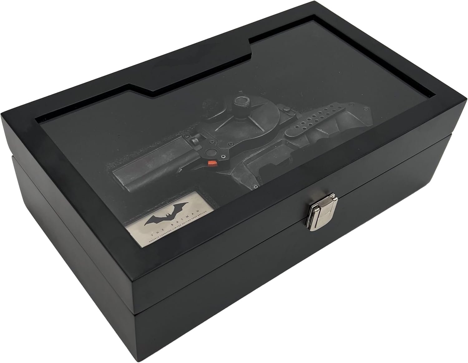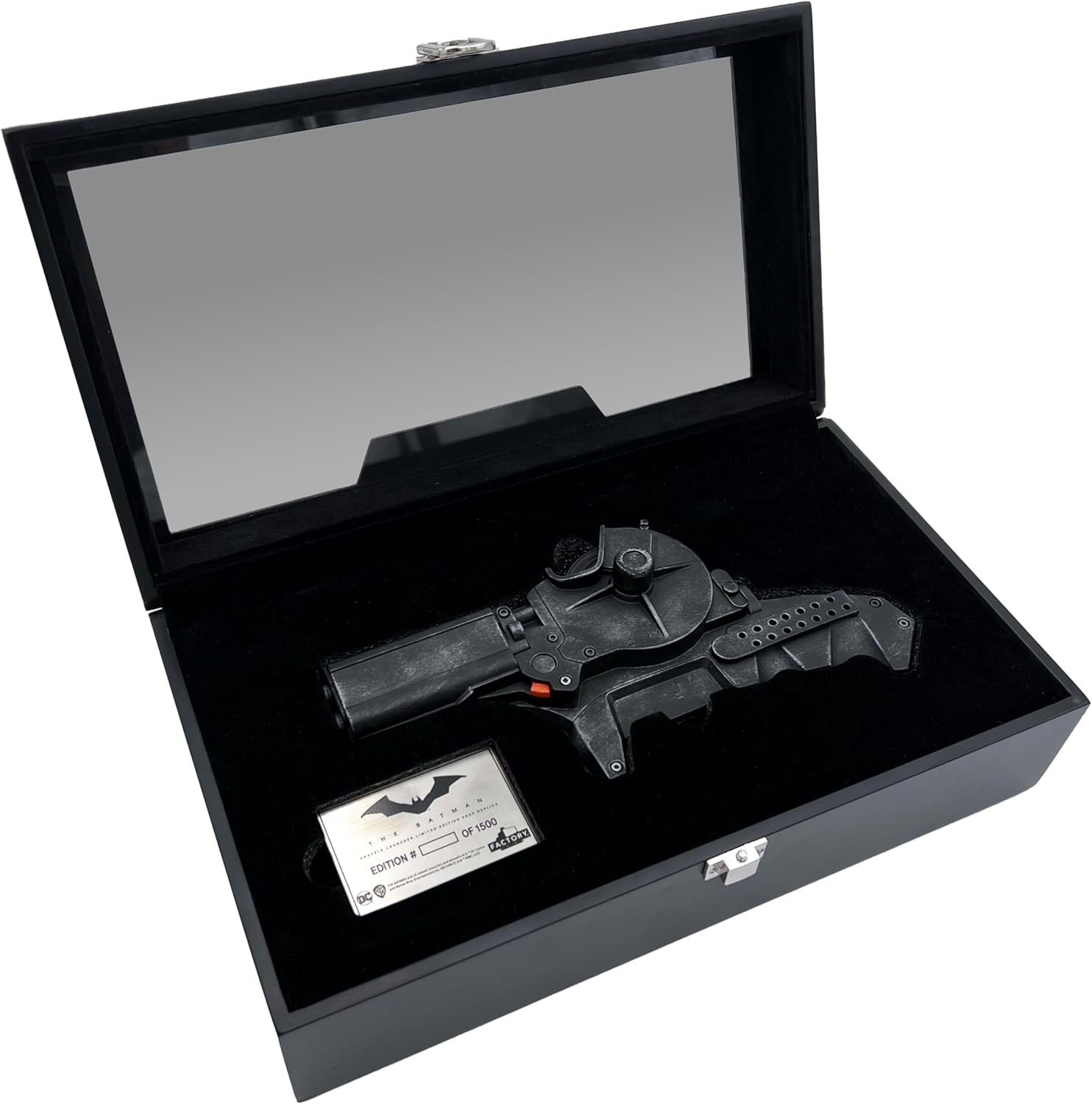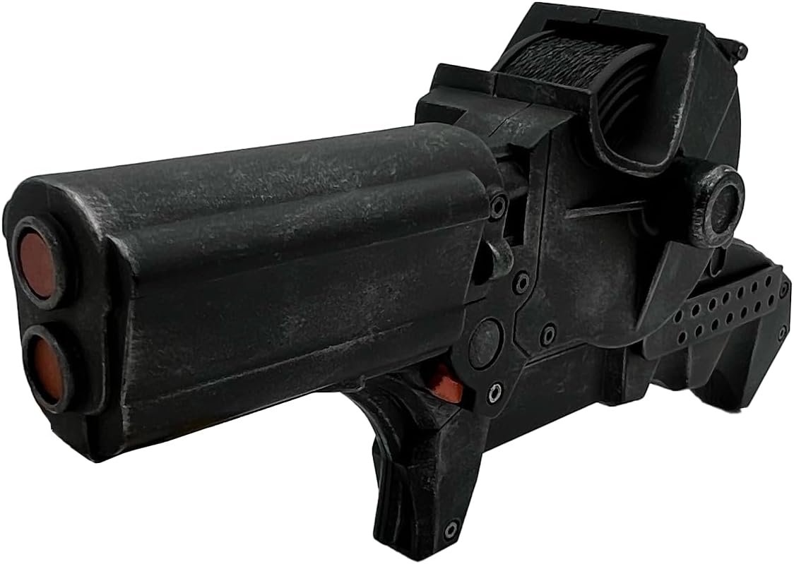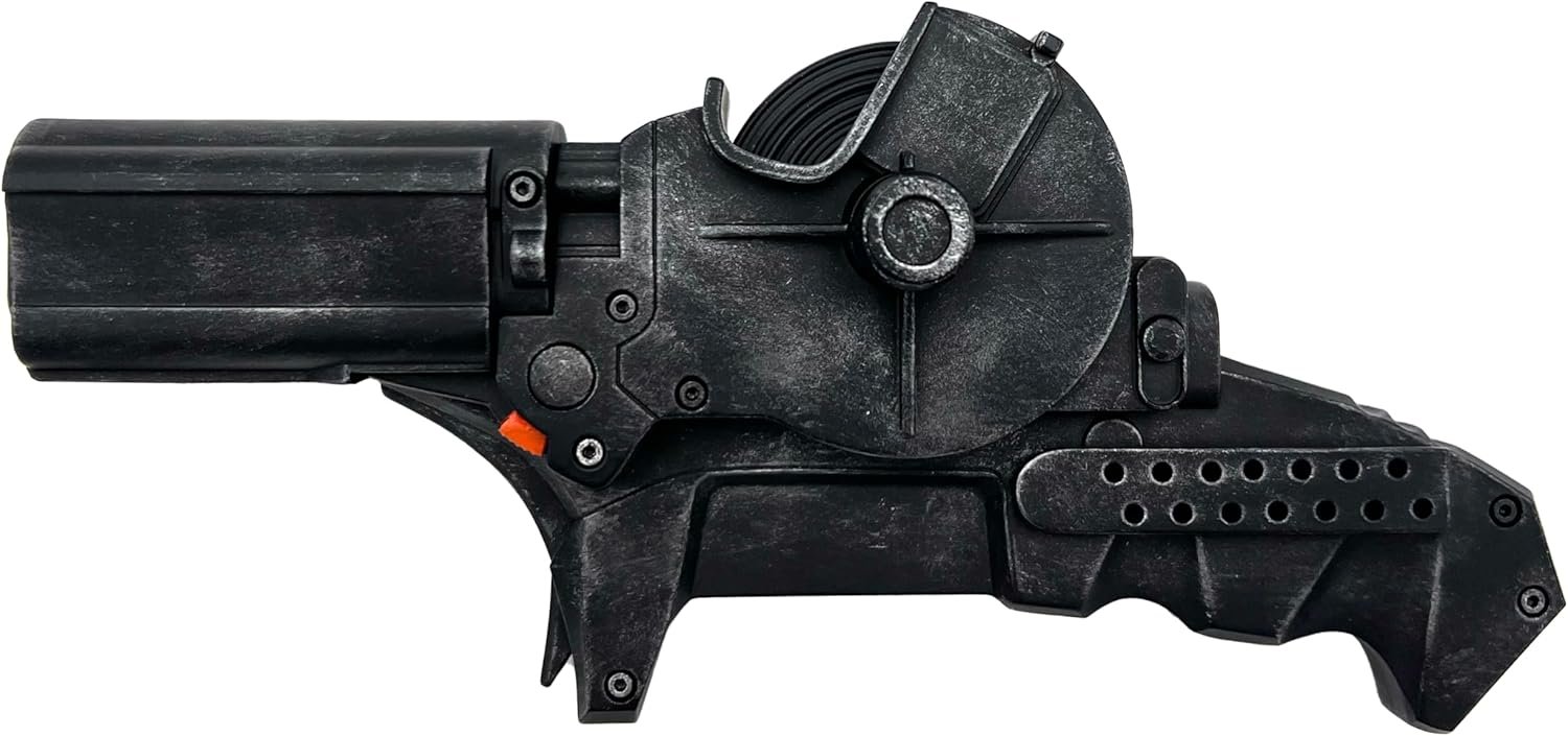 The Grapple Launcher from The Batman is a precise, full-size metal replica of the iconic prop, crafted with details from the film’s production team. Featuring a hand-weathered finish, rotating nylon rope, and a two-position activation switch, it comes in a museum-quality presentation box with a black satin finish and the Batman logo. Each limited-edition piece includes a metal plaque and a certificate of authenticity. Dimensions are 8.25" x 2" x 4". This collector’s item is designed for adults 18 and older and is not a toy.
