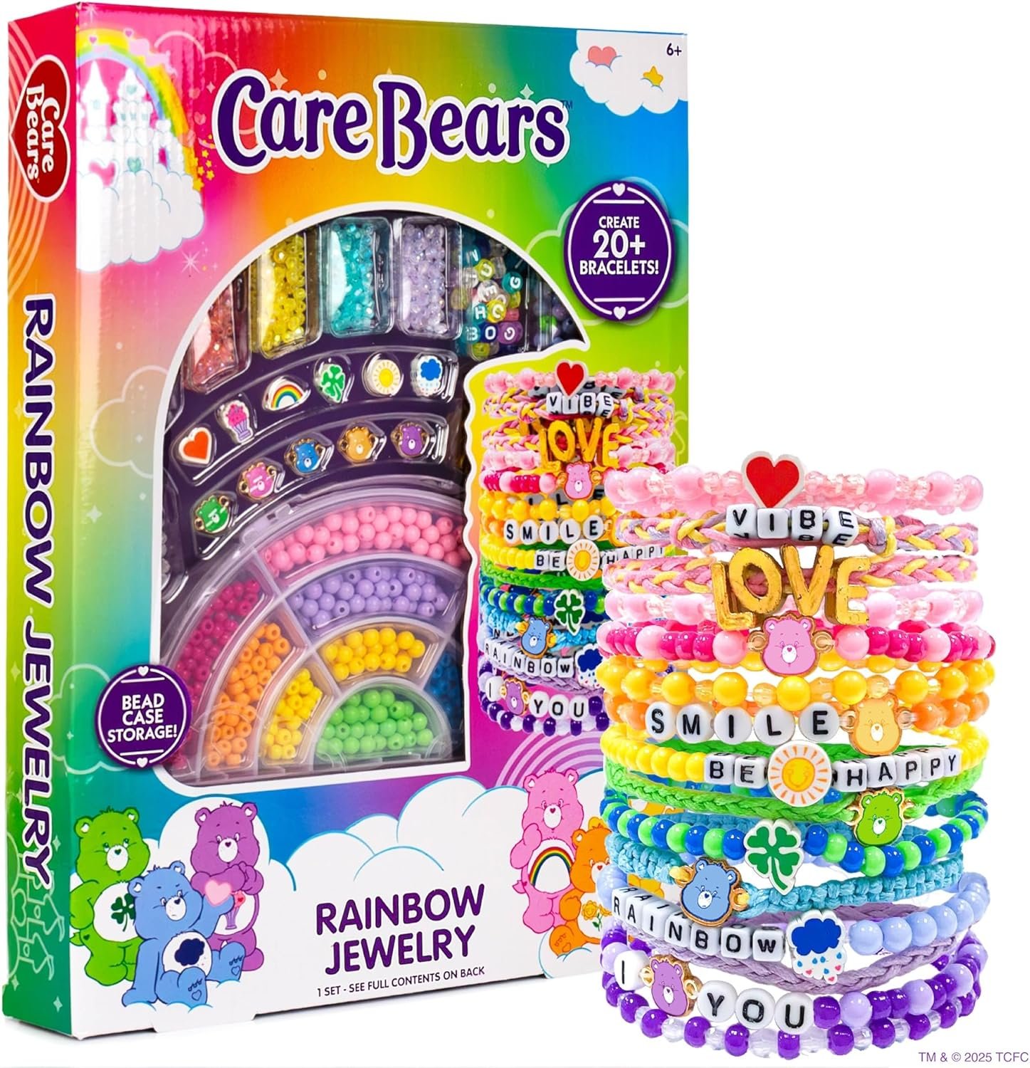 Unleash creativity with the Care Bears Rainbow Jewelry Making Kit! Featuring over 1,000 colorful beads and unique charms inspired by the Care Bears’ belly badges, this kit allows you to create 20+ bracelets celebrating friendship. It includes cording, alphabet beads for personal touches, and charms representing characters like Funshine and Cheer Bear. Perfect for sharing at family nights or parties, the travel-friendly rainbow-shaped storage case keeps everything organized. Suitable for ages 6 and up, this kit is a treasure trove of self-expression and nostalgic fun for Care Bears fans!