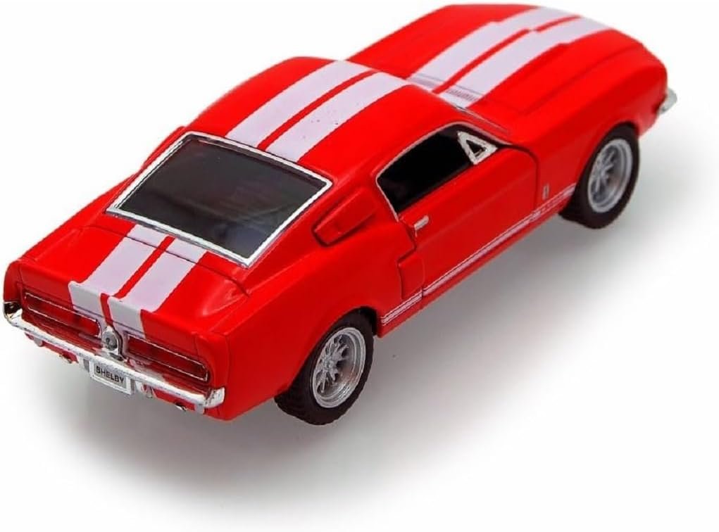 Relive the classic era of American muscle cars with the KiNSMART 1967 Ford Shelby Mustang GT500 die-cast model, measuring 5 inches (12.7 cm) in length. This detailed 1:38 scale replica features vibrant red coloring, opening doors, and a pullback action for realistic racing. Perfect for play or display, it captures the essence of the legendary Shelby Mustang GT500. Crafted with precision, this model is an essential collectible for car enthusiasts, allowing you to enjoy a piece of automotive history in your hand.