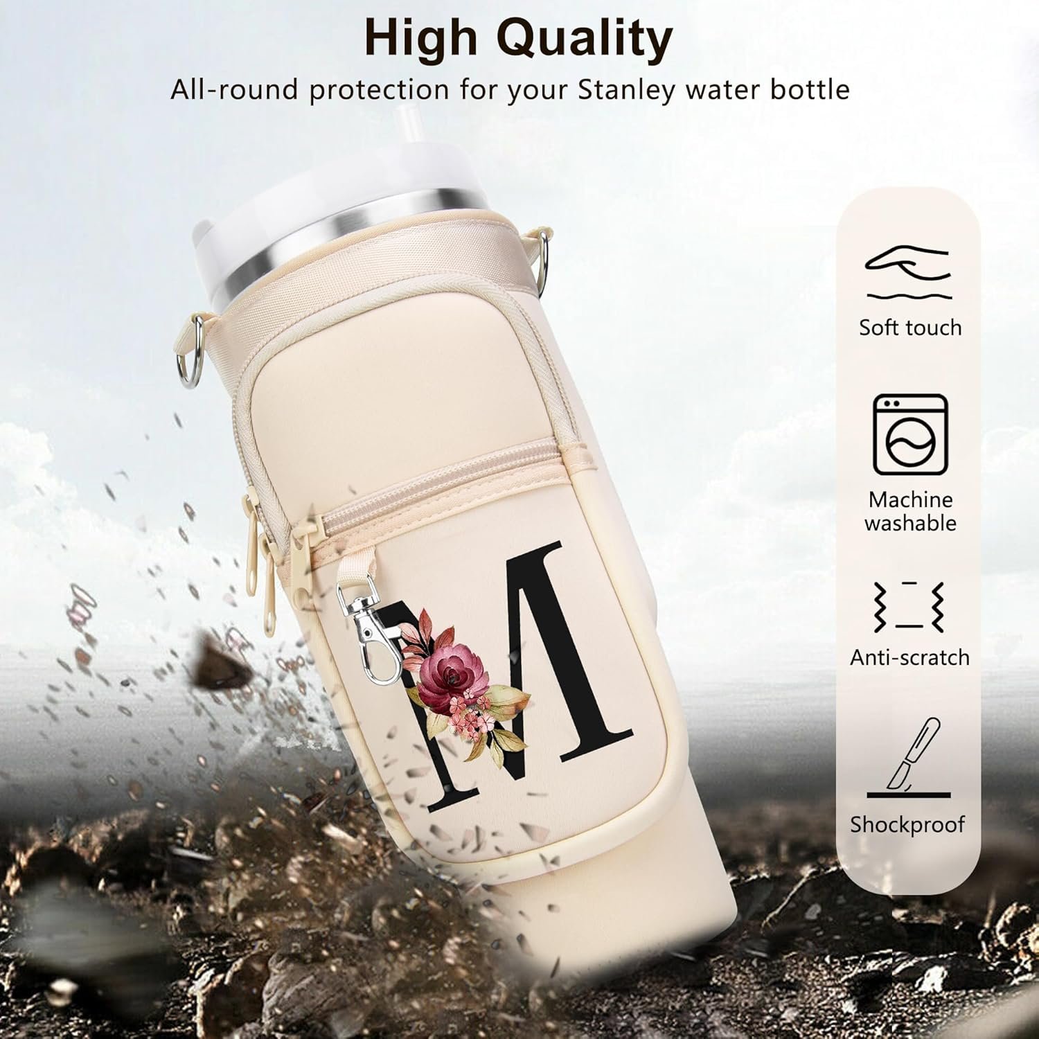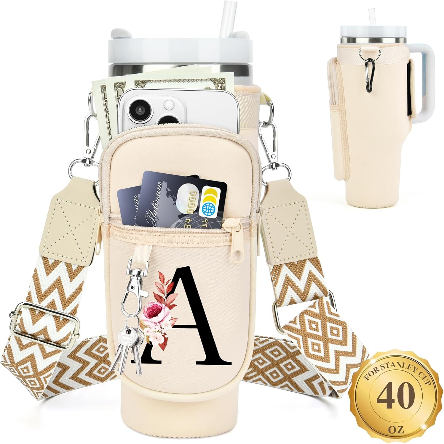 The personalized Stanley cup holder features stylish initials and comes in five elegant colors—Cream, Pink, Black, Blue, and Gray. It’s designed to securely fit various 40 oz tumblers and includes a durable, adjustable strap for hands-free convenience. Made from premium neoprene, it offers comfort and protection against scratches. The spacious front pocket accommodates essentials like phones, cash, and keys, making it perfect for everyday use, travel, or outdoor activities. This holder is a thoughtful gift idea for special occasions, ensuring hydration and organization on the go.