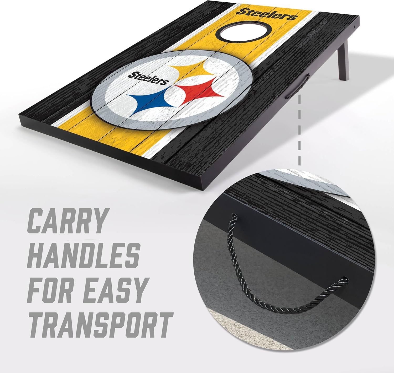 Introducing a premium 2′ x 3′ cornhole game set made from high-quality MDF, featuring durable PVC lamination and vibrant team graphics. This all-wood set includes two boards and eight regulation-sized bags, ensuring lasting performance and style. The meticulously UV printed graphics enhance aesthetics while resisting fading. Ideal for game-day parties or tailgating, this versatile set provides endless entertainment. YouTheFan offers a range of officially licensed sports products for fans, including various accessories for NFL, NCAA, and NHL teams.